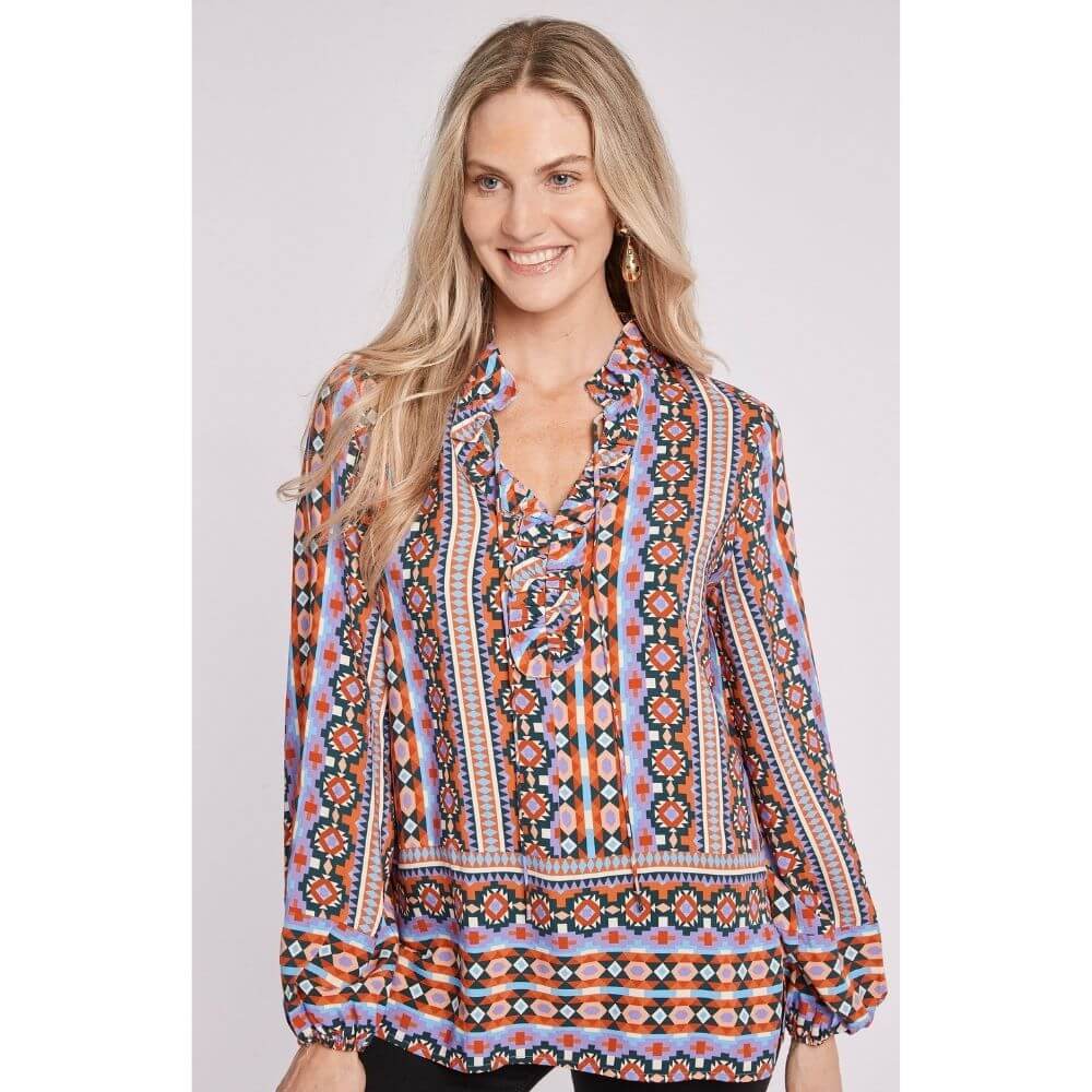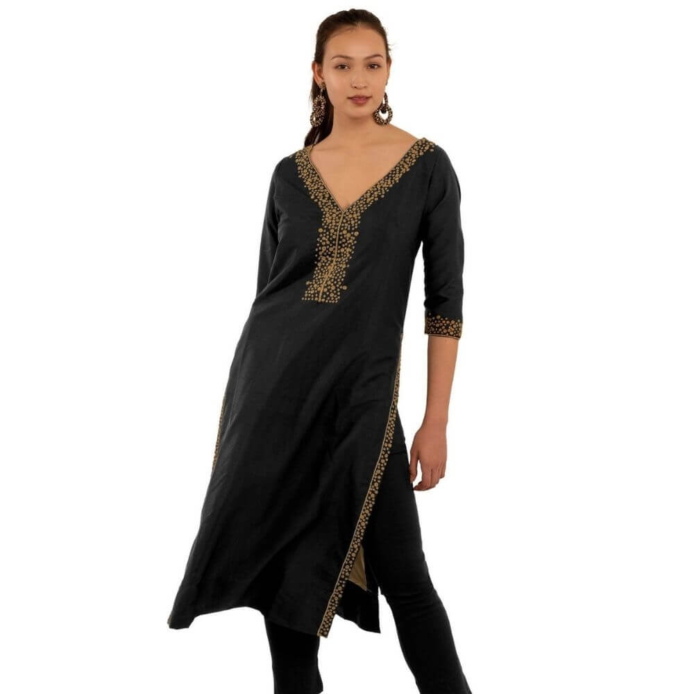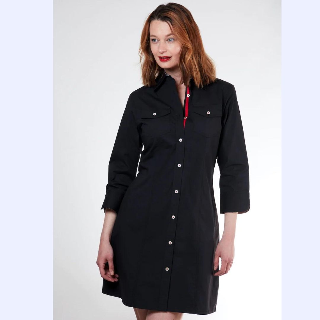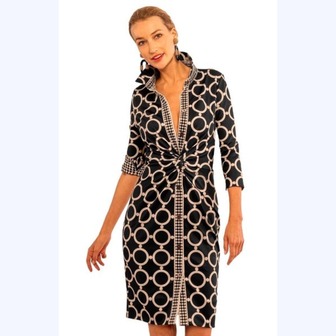 Black & White Ruffle Neck Dress 3/4 Sleeves