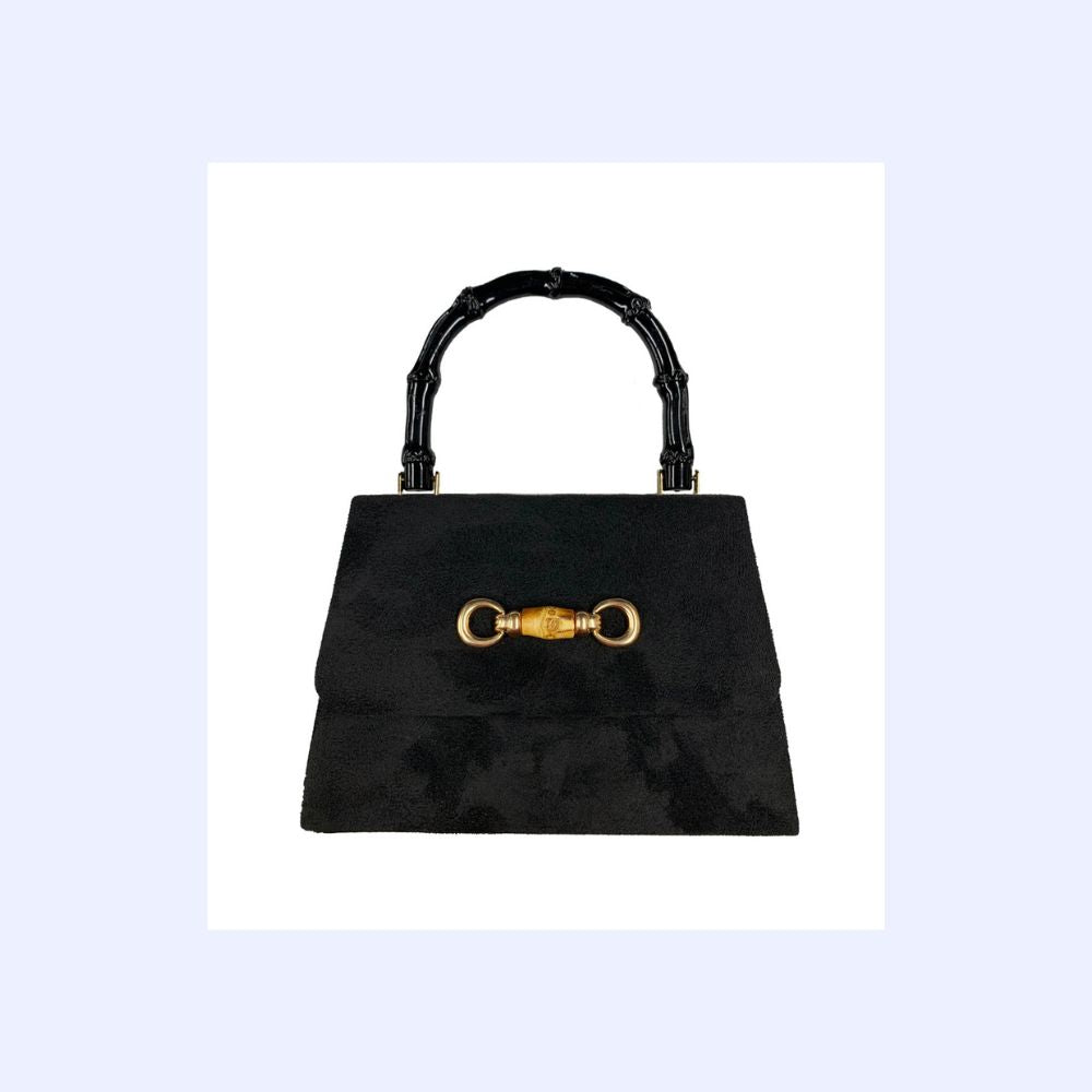 Black Suede Bamboo Handle Bag