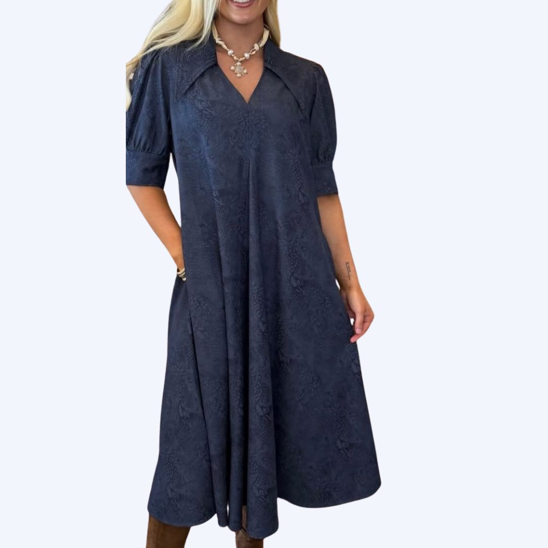 Navy Embossed Floral Dress