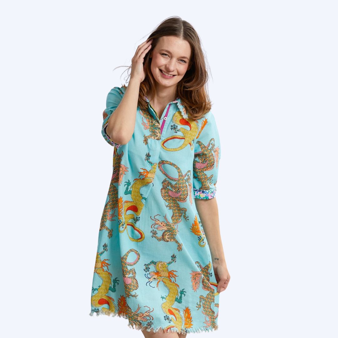 Turquoise Dragon Print Dress