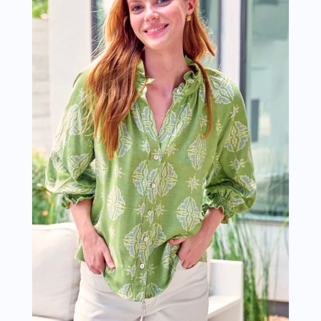 Green Ruffle Neck Shirt