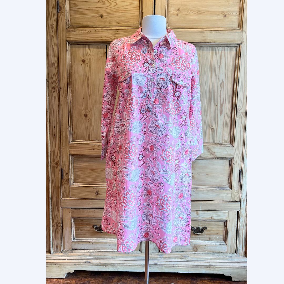 Pink & Red Floral Shirt Dress