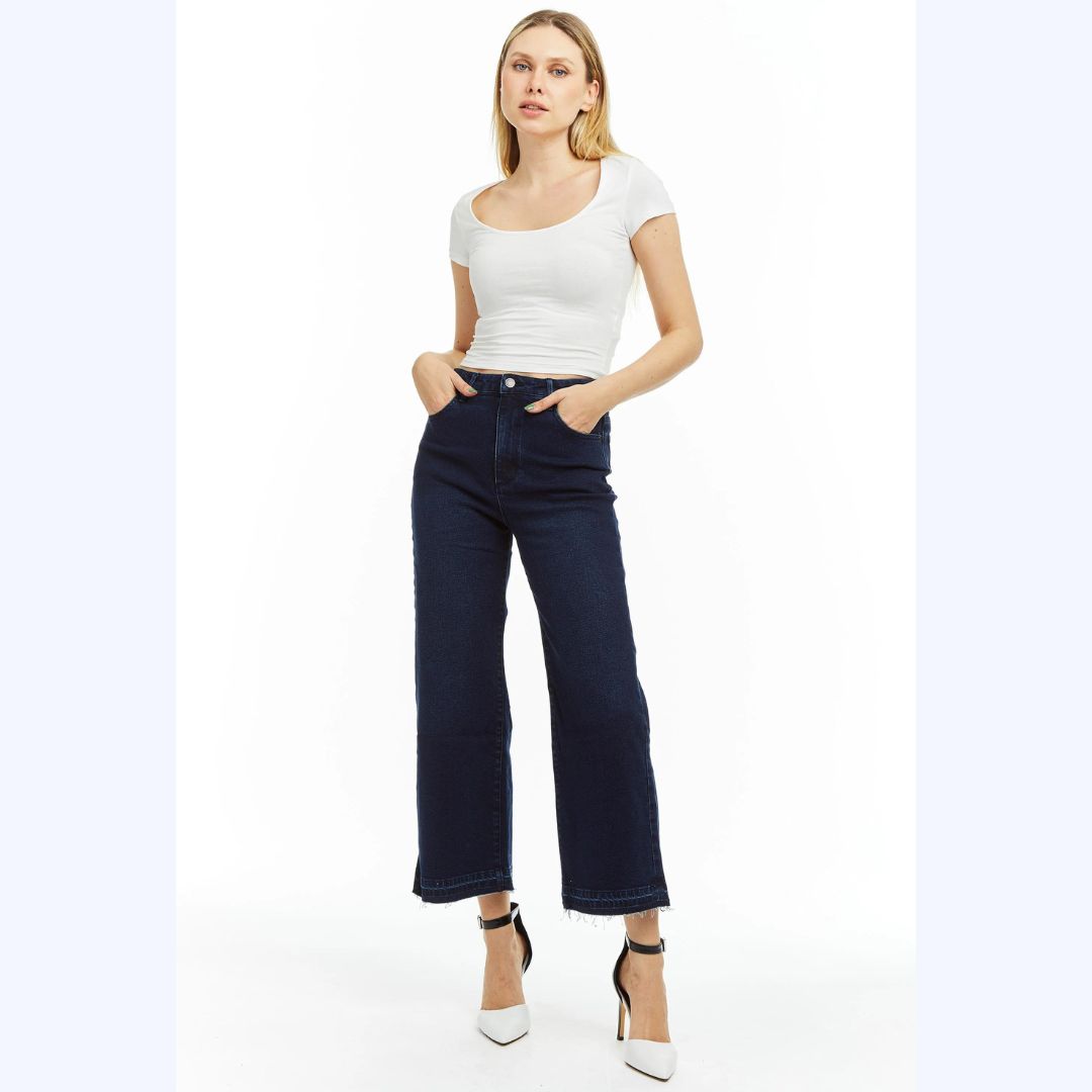 Blue Denim Wide Straight Ankle Jeans
