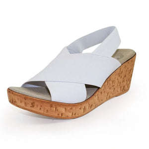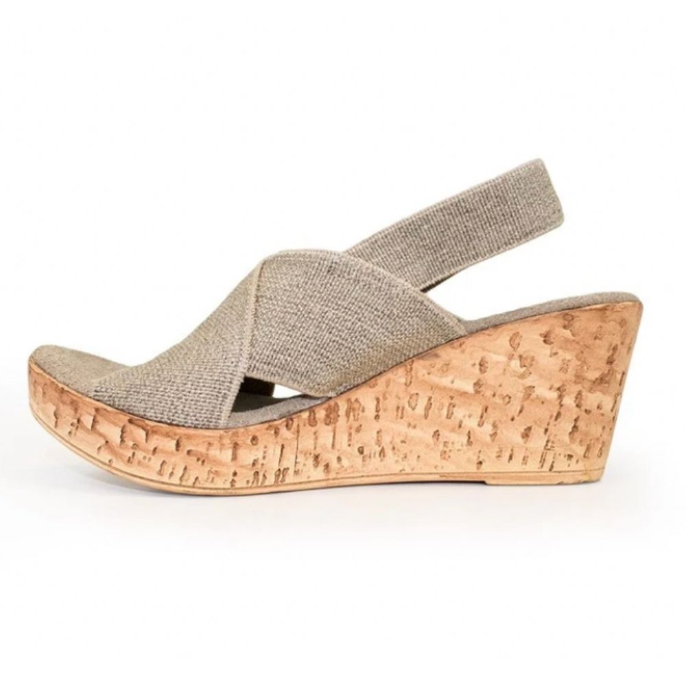 The best and cutest platform wedge with wide criss-cross straps! The perfect height to look great with dresses of any length, pants and shorts. The best part is the stretchy sling back strap on the heel so they are easy to keep on and wear all day! They give your legs that elongated look by having the foot slightly elevated without the steep pitch of a high heel. Five great colors. Love!!!